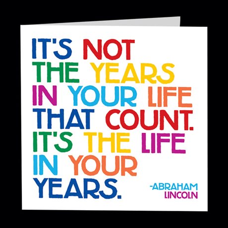 Detta gratulationskort med texten: "It's not the years in your life that count. It's the life in your years. - Abraham Lincoln".